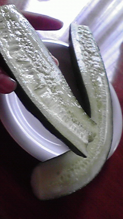 おじーちゃんのきゅうりはおおきい。